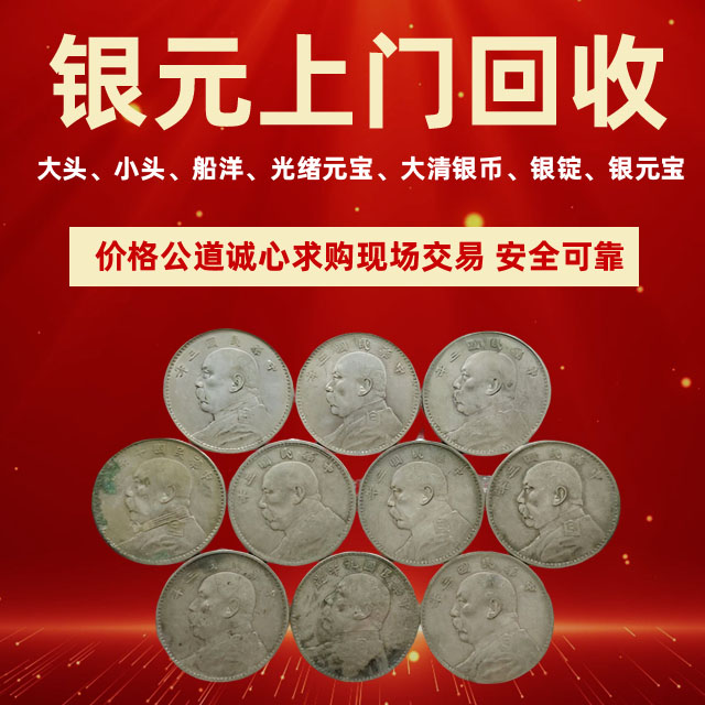 上門(mén)回收銀元 銀元寶,回收范圍包含:大頭、小頭、船洋、光緒元寶、大清銀幣、銀錠、銀元寶等各種銀幣,價(jià)格公道誠(chéng)心求購(gòu)。全國(guó)可上門(mén)收購(gòu),本信息長(zhǎng)期有效,騙子和賣(mài)假貨的人請(qǐng)走開(kāi)!有銀元消息可以與我們合作,也請(qǐng)知假售假者不要來(lái)浪費(fèi)大家寶貴的時(shí)間!
